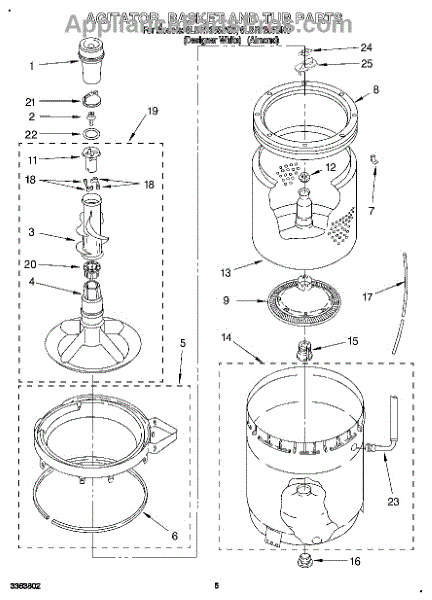Parts for Whirlpool 6LBR7255BN0: 03 - Agitator, Basket And Tub Parts