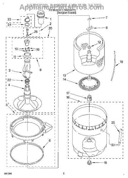 Parts for Whirlpool 7LSR5233EZ0: 03 - Agitator, Basket And Tub Parts