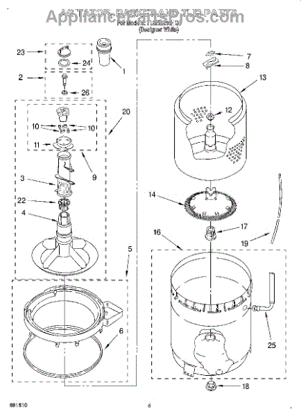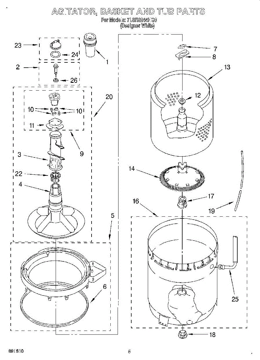 Parts for Whirlpool 7LSR8244HQ0: 03 - Agitator, Basket And Tub Parts