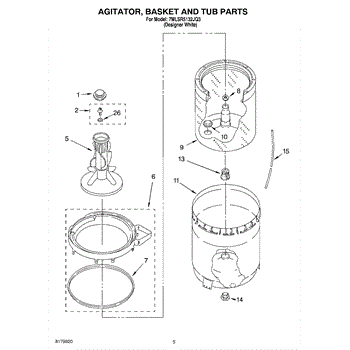 Parts for Whirlpool 7MLSR5132JQ3: 03 - Agitator, Basket And Tub Parts