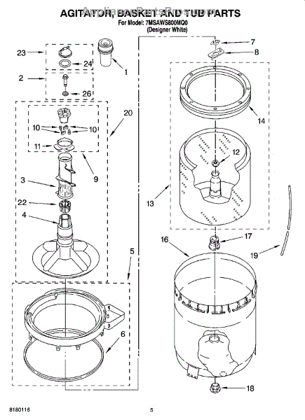 The Complete Agitator Assembly is an OEM part for Whirlpool washing machines. This assembly includes the central vertical agitator component along with the retainer ring. Together they are responsible for the agitation and rubbing motions that work to remove soils and stains from clothing during wash cycles. Causes of a bad agitator assembly can include wear and tear leading to wobbly or loose motions, cracks in plastic components from repeated impacts, or corrosion of metal components. Symptoms of a bad complete agitator assembly include: