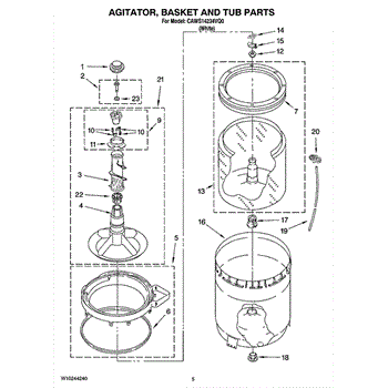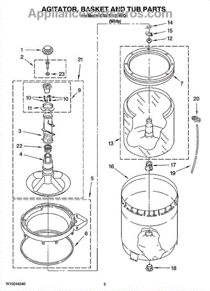 The Complete Agitator Assembly is an OEM part for Whirlpool washing machines. This assembly includes the central vertical agitator component along with the retainer ring. Together they are responsible for the agitation and rubbing motions that work to remove soils and stains from clothing during wash cycles. Causes of a bad agitator assembly can include wear and tear leading to wobbly or loose motions, cracks in plastic components from repeated impacts, or corrosion of metal components. Symptoms of a bad complete agitator assembly include: