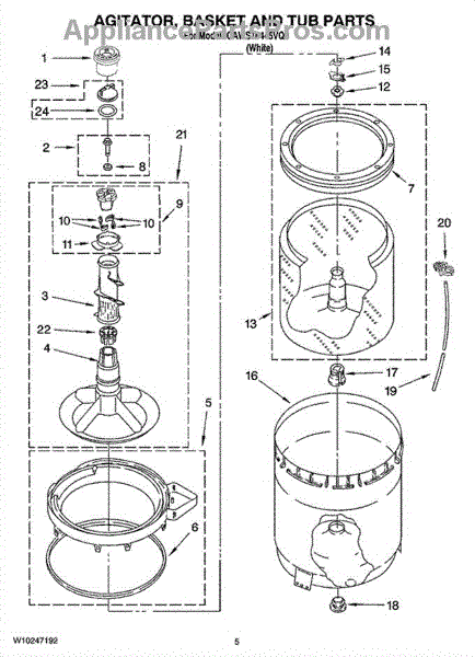 The Complete Agitator Assembly is an OEM part for Whirlpool washing machines. This assembly includes the central vertical agitator component along with the retainer ring. Together they are responsible for the agitation and rubbing motions that work to remove soils and stains from clothing during wash cycles. Causes of a bad agitator assembly can include wear and tear leading to wobbly or loose motions, cracks in plastic components from repeated impacts, or corrosion of metal components. Symptoms of a bad complete agitator assembly include: