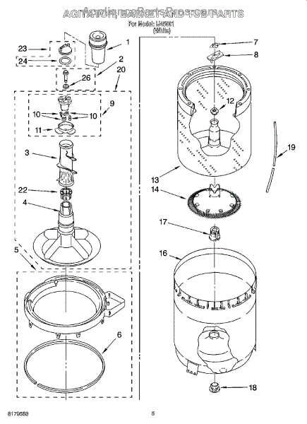 Parts for Whirlpool IJ45001: 03 - Agitator, Basket And Tub Parts
