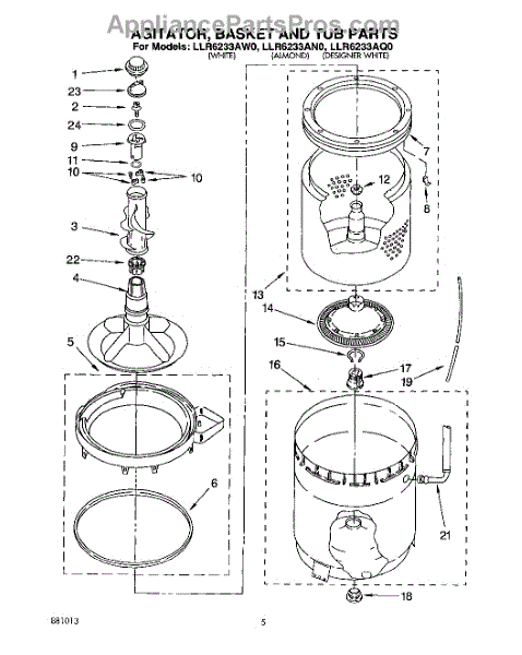 Parts for Whirlpool LLR6233AW0: 03 - Agitator, Basket And Tub Parts
