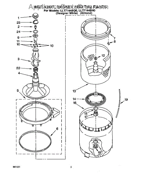 Parts for Whirlpool LLT7144BW0: 03 - Agitator, Basket And Tub Parts