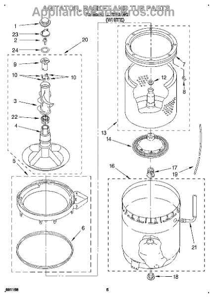 Parts for Whirlpool LLT8233AW2: 03 - Agitator, Basket And Tub Parts