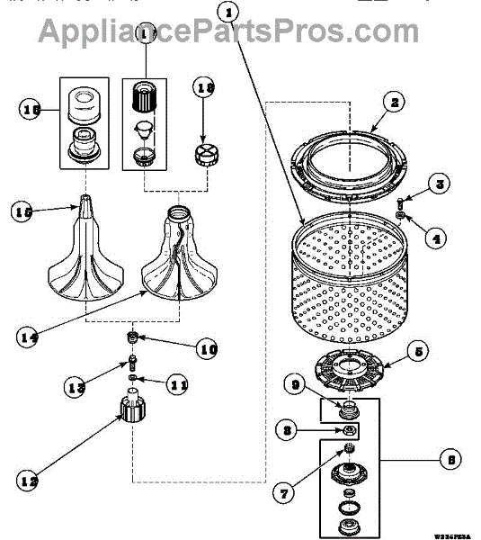 Parts for Amana AWM190W2 / PAWM190W2: 03 - Agitator / Drive Bell / Seal Kit / Tub & Hub Parts