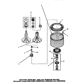 Parts for Amana AWM593W2: 03 - Agitator / Drive Bell / Seal Kit / Tub & Hub Parts