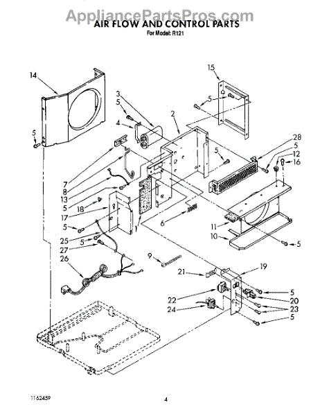 This screw is used to secure the handle end cap to the center of the door. The screw size measures 8-18 x 1/2 inches.
