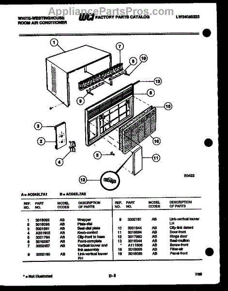 Parts for Frigidaire AC042L7A1: 03 - Air Handling Parts