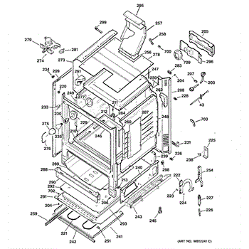 Oven vent assembly for gas ranges. Mounts inside the oven cavity to channel heat and steam. Replace if cracked, damaged, or missing for proper ventilation.