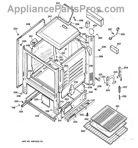 Replacement oven rack for electric and gas ranges. Installs inside oven cavity. Needed when original rack is missing, damaged, or warped from use.