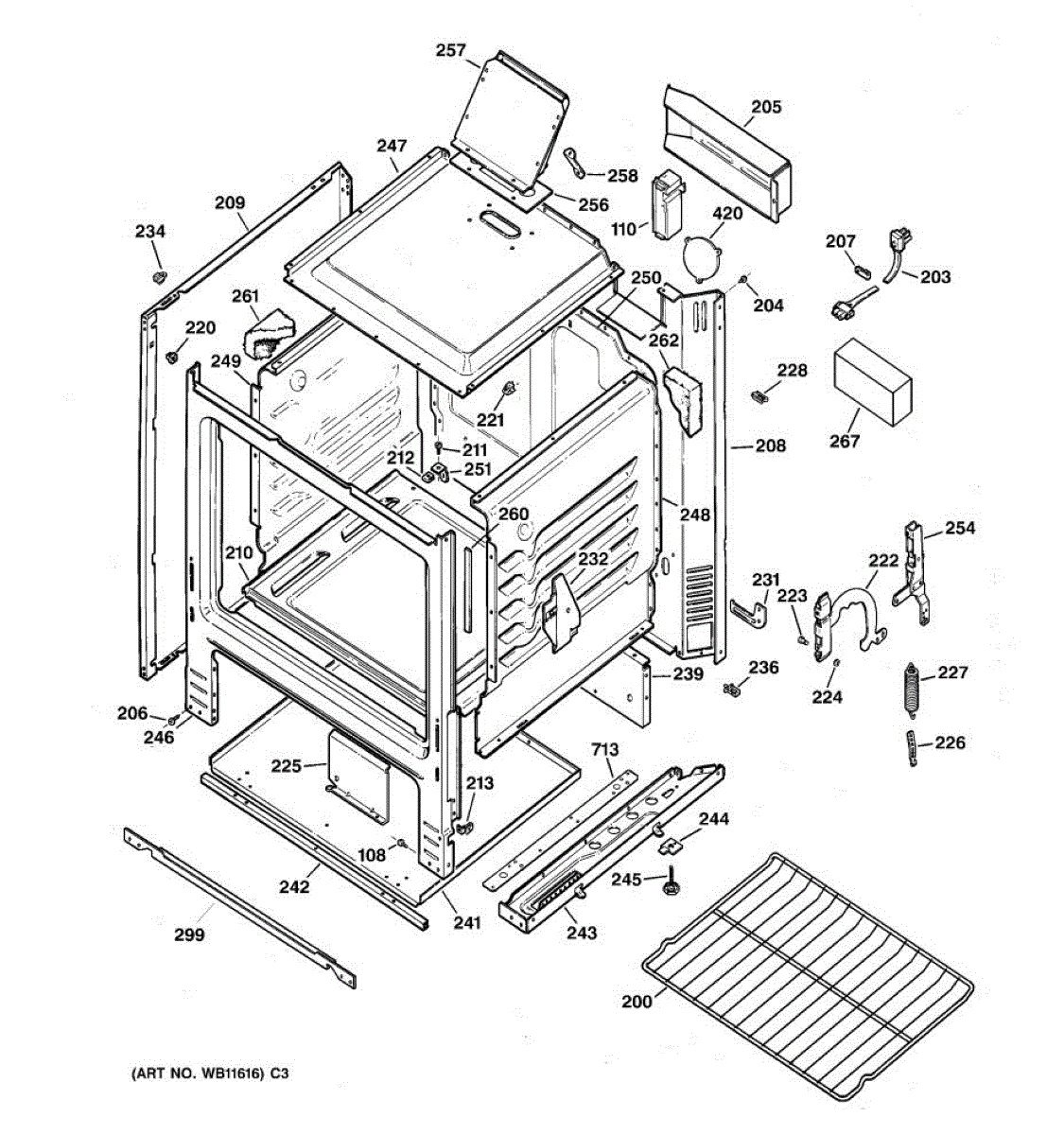 Frame weld for gas ranges. This structural component supports the range cabinet. Replace if cracked, broken, or damaged during repair work.