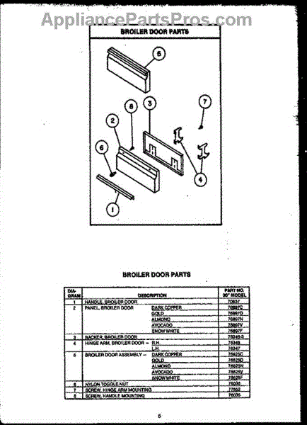 Parts for Amana RLR398: 03 - Broiler Door Parts