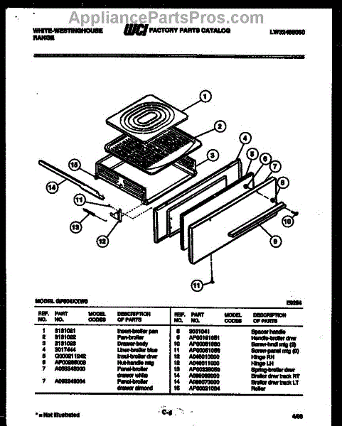 Parts for Frigidaire GF504KXD0: 03 - Broiler Drawer Parts