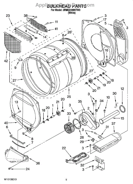 This bulkhead is the front interior panel that supports the drum and helps direct dryer airflow for efficient tumbling and exhaust. It restores proper drum alignment and airflow when the original panel is worn or damaged. What it does: