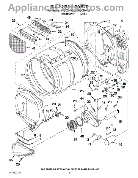 This is a drum assembly used in many home dryers. The component is located inside the appliance and is tasked with holding the clothing during a dryer cycle. It is made of durable materials but can experience wear and tear or damage that cause it to malfunction. If the drum assembly is worn or damaged, it may cause the appliance to buzz or squeal, start and stop, and seize up during use.If the drum assembly is damaged or worn, it will need to be replaced. This will require a set of tools and a pair of work gloves. Before starting the replacement process, make sure the dryer is unplugged from the wall. The dryer will need to be disassembled to access the drum assembly. The belt can be used to pull out the drum so the new component can be installed. Replace the part and reassemble the dryer. It should be plugged back in before use.This part is sold on an individual basis. It is designed to be used with several dryers created by Admiral, Amana, Maytag, Kenmore, and Whirlpool. The drum assembly is an authentic OEM replacement part that is sourced directly from the manufacturer.