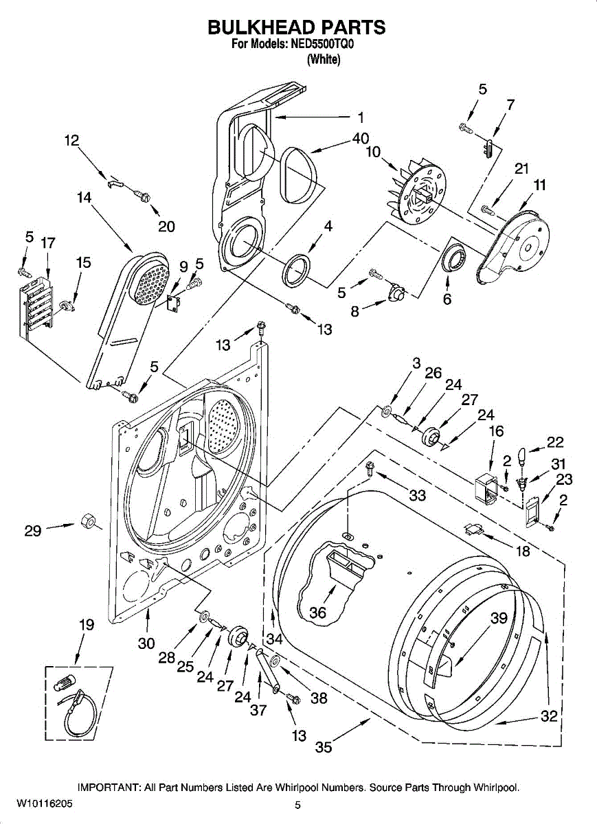 The Dryer Repair Kit is an OEM replacement part for Whirlpool 29-inch large capacity dryer models. It is a kit designed to provide various essential components and hardware needed for common dryer repairs or maintenance tasks.