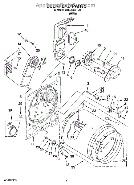 Causes of a bad rear panel can include impacts or accidents that damage the material, failure of mounting brackets over time, or general wear and tear cracks or breaks from repeated drum rotation and clothing.