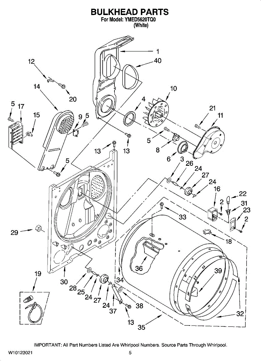 The Dryer Repair Kit is an OEM replacement part for Whirlpool 29-inch large capacity dryer models. It is a kit designed to provide various essential components and hardware needed for common dryer repairs or maintenance tasks.