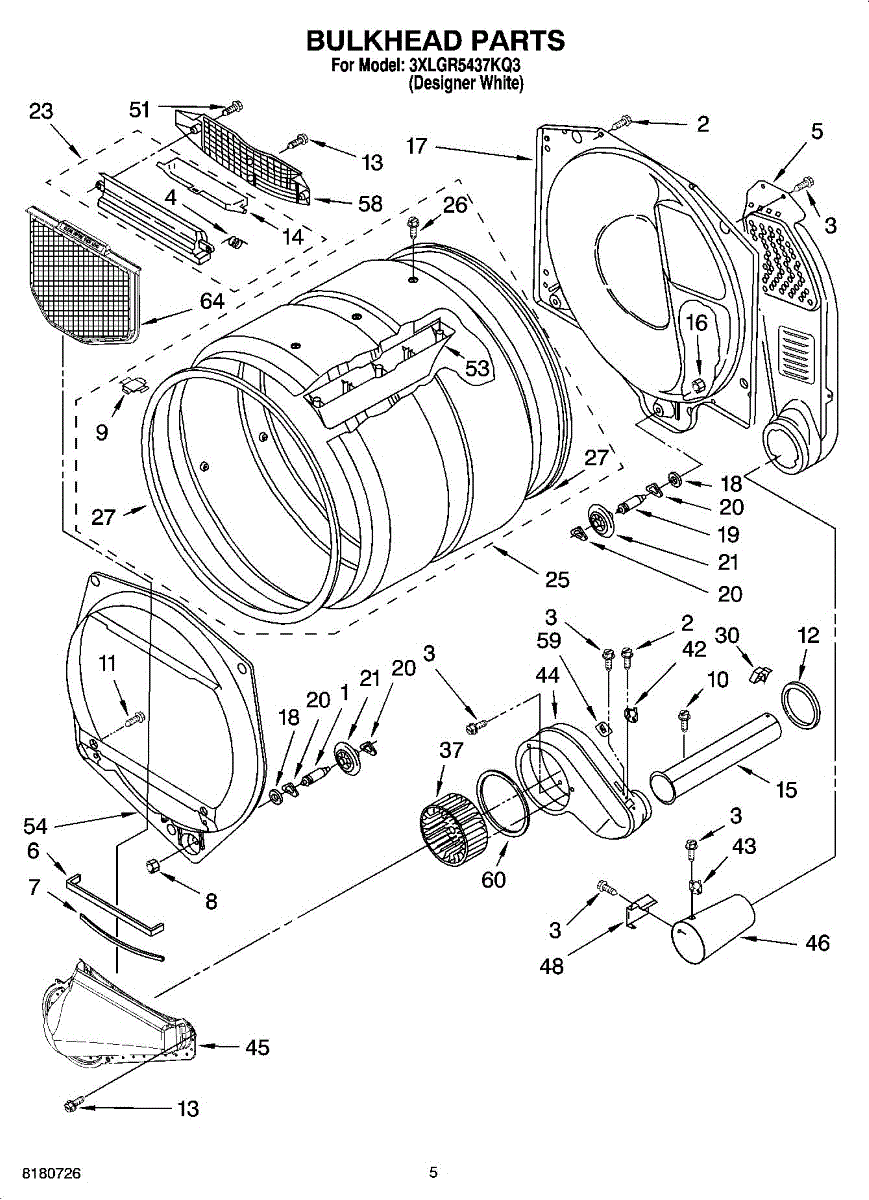 This bulkhead is the front interior panel that supports the drum and helps direct dryer airflow for efficient tumbling and exhaust. It restores proper drum alignment and airflow when the original panel is worn or damaged. What it does: