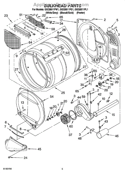 This front drum bulkhead is the stationary front panel that supports the dryer drum and seals the drum opening to maintain proper airflow and drum alignment for reliable drying performance. What it does: