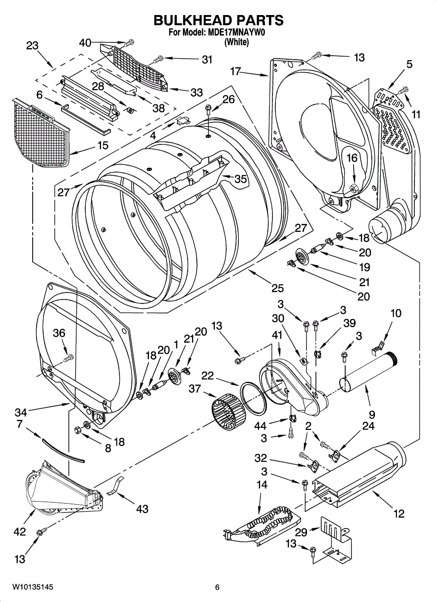 This bulkhead is the front interior panel that supports the drum and helps direct dryer airflow for efficient tumbling and exhaust. It restores proper drum alignment and airflow when the original panel is worn or damaged. What it does: