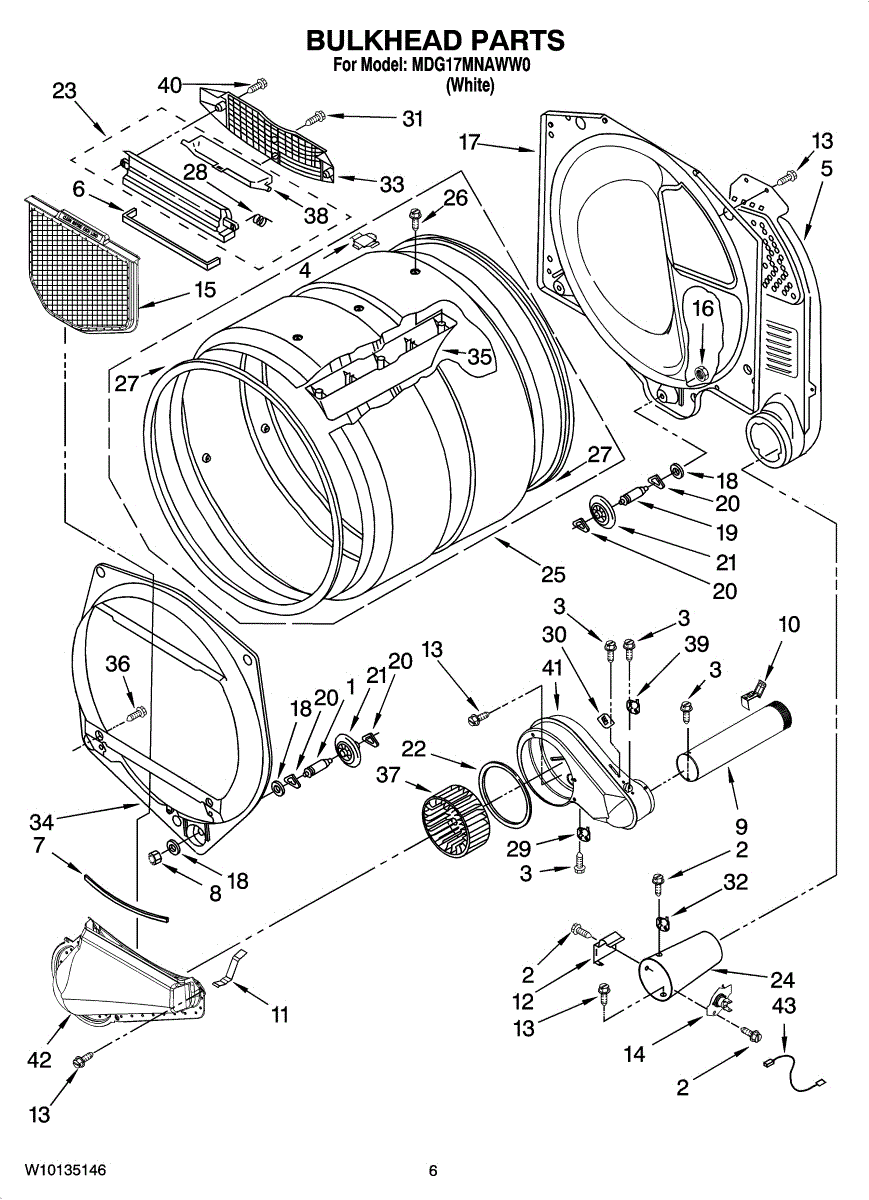 This is a drum assembly used in many home dryers. The component is located inside the appliance and is tasked with holding the clothing during a dryer cycle. It is made of durable materials but can experience wear and tear or damage that cause it to malfunction. If the drum assembly is worn or damaged, it may cause the appliance to buzz or squeal, start and stop, and seize up during use.If the drum assembly is damaged or worn, it will need to be replaced. This will require a set of tools and a pair of work gloves. Before starting the replacement process, make sure the dryer is unplugged from the wall. The dryer will need to be disassembled to access the drum assembly. The belt can be used to pull out the drum so the new component can be installed. Replace the part and reassemble the dryer. It should be plugged back in before use.This part is sold on an individual basis. It is designed to be used with several dryers created by Admiral, Amana, Maytag, Kenmore, and Whirlpool. The drum assembly is an authentic OEM replacement part that is sourced directly from the manufacturer.