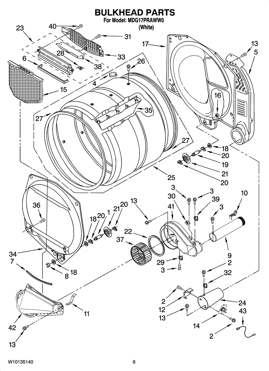 This bulkhead is the front interior panel that supports the drum and helps direct dryer airflow for efficient tumbling and exhaust. It restores proper drum alignment and airflow when the original panel is worn or damaged. What it does:
