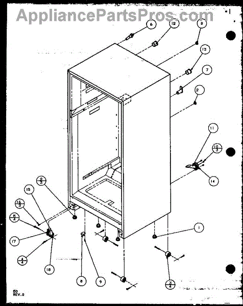 This factory screw secures appliance components to their mounting points. Replace missing, worn, or stripped hardware to restore a tight fit, proper alignment, and quieter operation across the affected assembly.