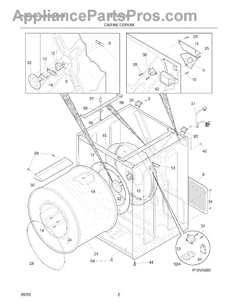 The Rear Drum Bearing Kit is an OEM replacement part for Frigidaire dryers. It contains a set of parts responsible for supporting the rear end of the dryer drum, allowing it to rotate smoothly and efficiently during the drying cycle.
