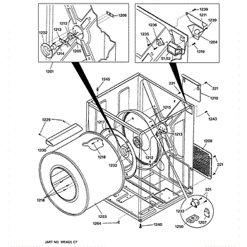 The Rear Drum Bearing Kit is an OEM part for GE dryers. The kit includes a rear bearing, shaft support, ball shaft, ball bearing, ball bearing retainer, high-temperature lubricant, and screws required for installation.