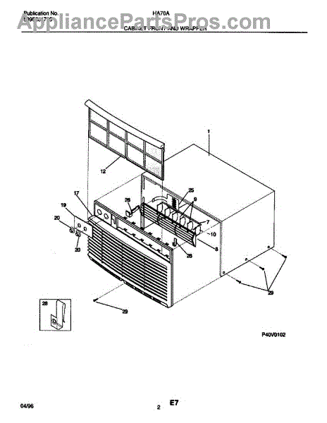 Parts for Frigidaire HA70A: 03 - Cabinet Front And Wrapper Parts