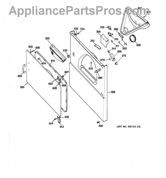 The Door Latch is an OEM part for GE dryers. This part ensures the dryer door stays securely closed during operation, activating the safety switch to allow the dryer to operate. The latch mechanism engages with the door strike to lock the door, preventing it from opening while the dryer is running, which is essential for both safety and proper functioning of the appliance.