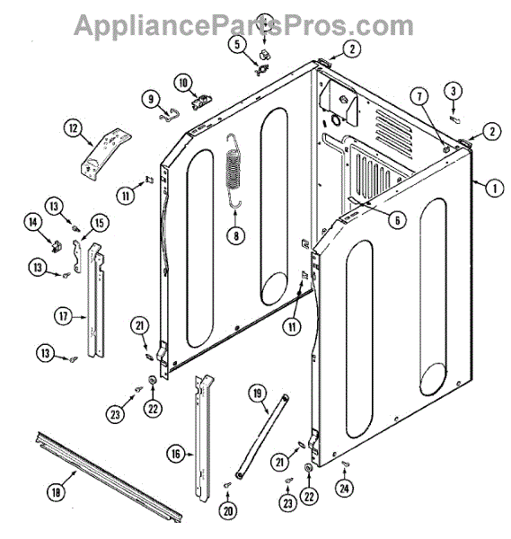 This spring support secures a suspension spring to the washer's frame, helping keep the tub stable during wash and spin. Replacing a damaged support restores proper balance control to reduce vibration and banging. What it does: