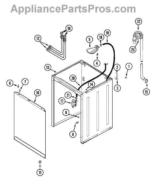 This flume hose kit replaces the flexible hose that routes water from the dispenser/fill flume into the washer tub. Restoring a tight, unobstructed hose helps prevent leaks and ensures detergents, bleach, and softener are carried into the wash.