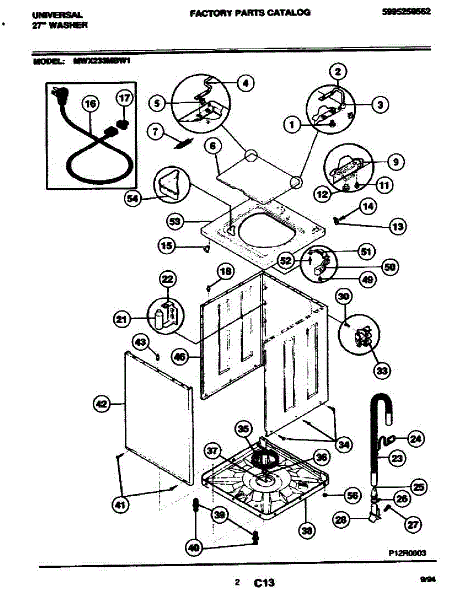 The Cord is an OEM replacement part for Frigidaire washing machines. Extending from the rear of the unit, it safely powers the washer through a connection to a wall outlet.