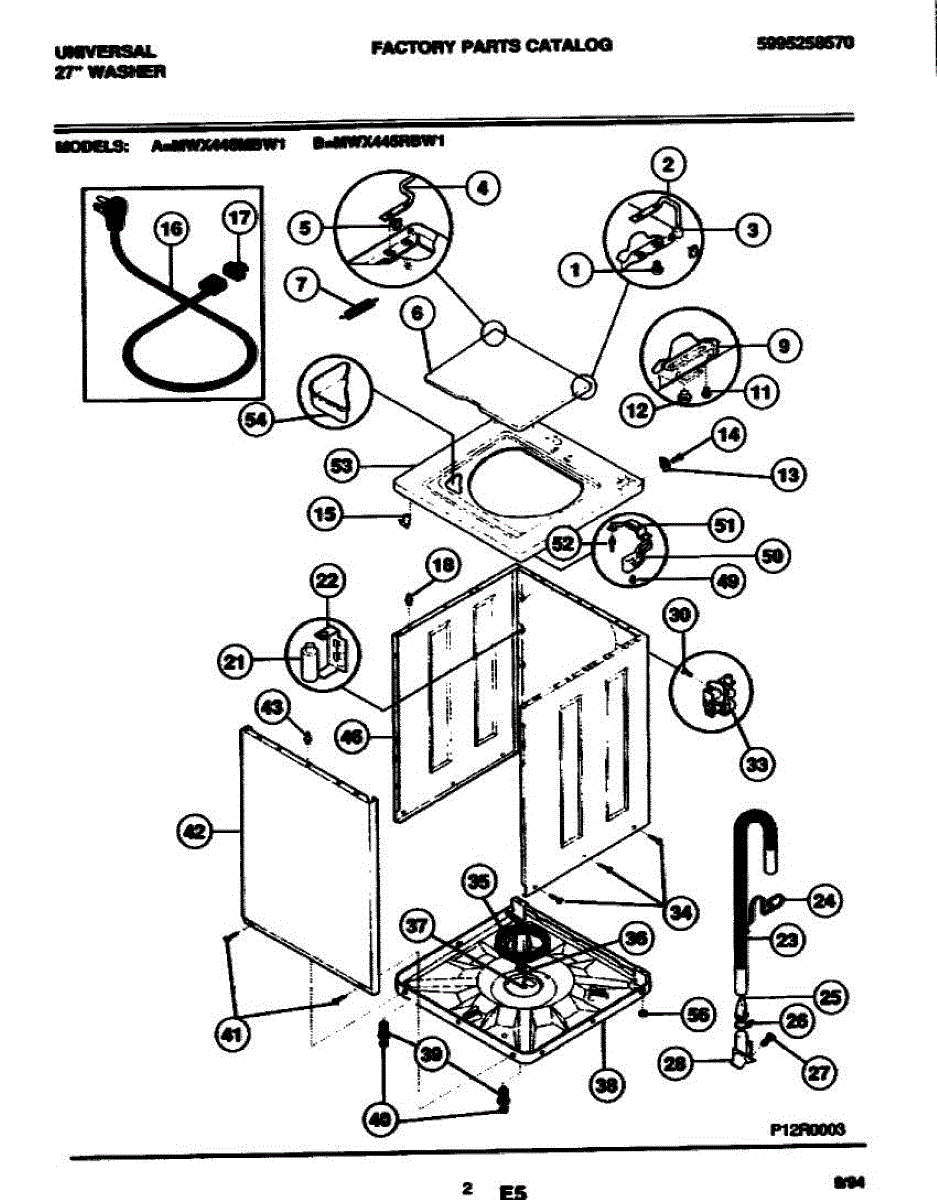 The Cord is an OEM replacement part for Frigidaire washing machines. Extending from the rear of the unit, it safely powers the washer through a connection to a wall outlet.