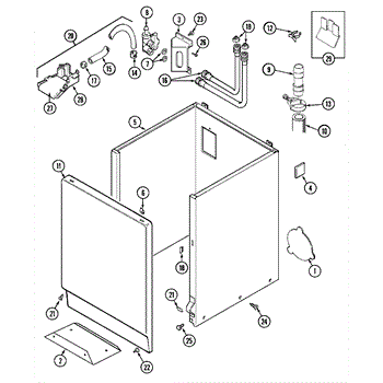 This upper injector directs incoming water cleanly into the washer tub during fill and rinse. Replacing a cracked or clogged injector restores proper water delivery, helps prevent splash-back, and supports consistent wash performance.