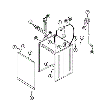 • Directs fill/dispenser water from the flume to the tub during wash and rinse