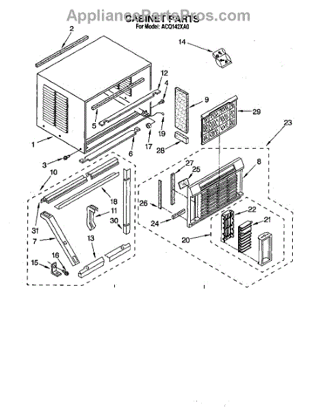 Parts for Whirlpool ACQ142XA0: 03 - Cabinet Parts