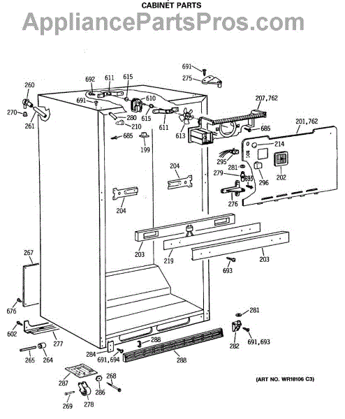 Parts for Ge CTX18LASQRAD: 03 - Cabinet Parts