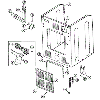 This small strainer sits inside the washer's water inlet valve and screens out sand, rust, and sediment from the supply lines. Replacing a clogged or missing screen restores normal fill flow and helps protect the valve.