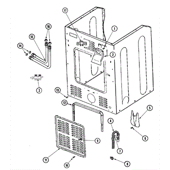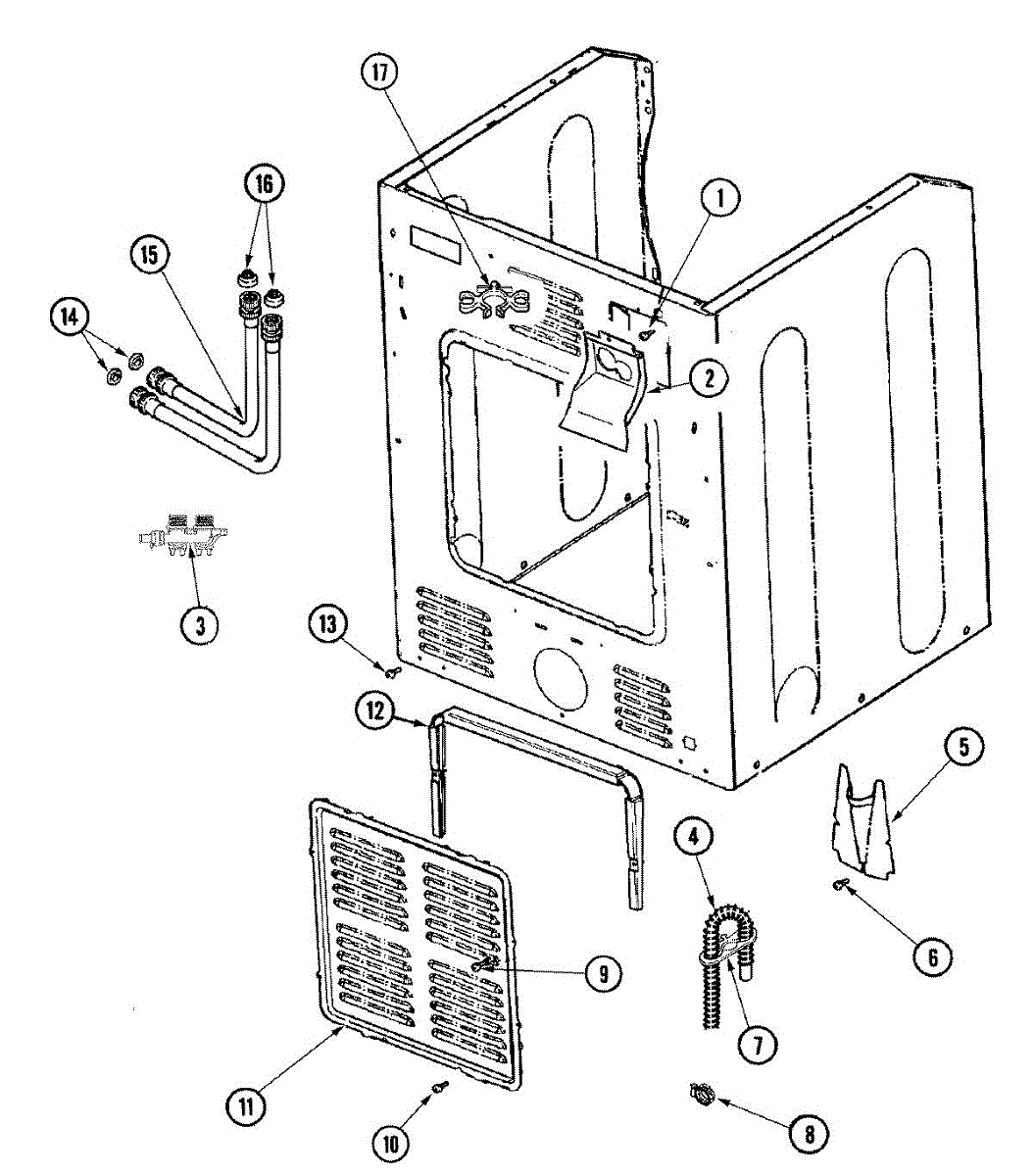 This small strainer sits inside the washer's water inlet valve and screens out sand, rust, and sediment from the supply lines. Replacing a clogged or missing screen restores normal fill flow and helps protect the valve.