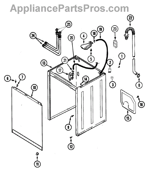 Secures washing machine hoses to prevent leaks in the water system. Replace if damaged, corroded, or connections are loose. Verify fit by part number.