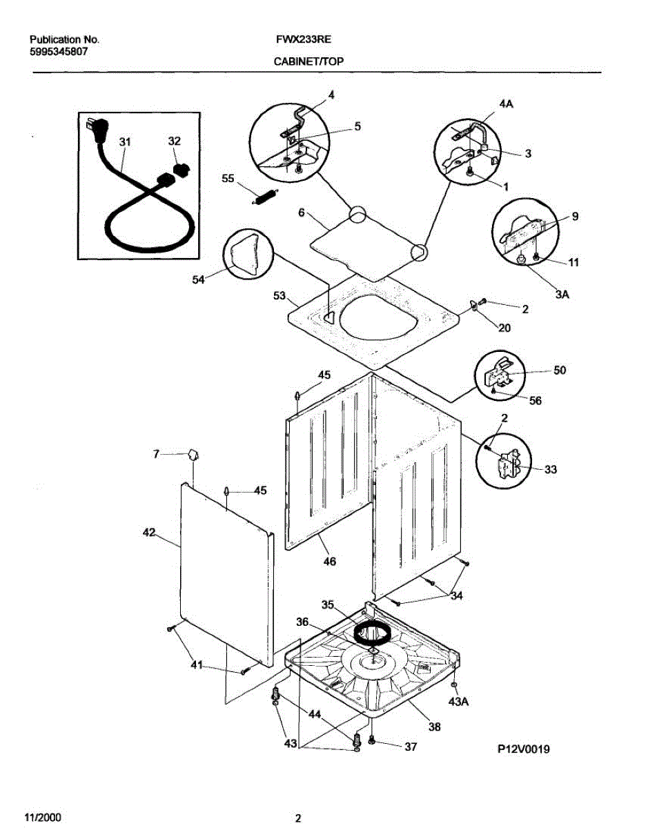 Protects the power cord where it passes through the washer cabinet. Replace if cracked, worn, or missing to prevent cord chafing and wire exposure.