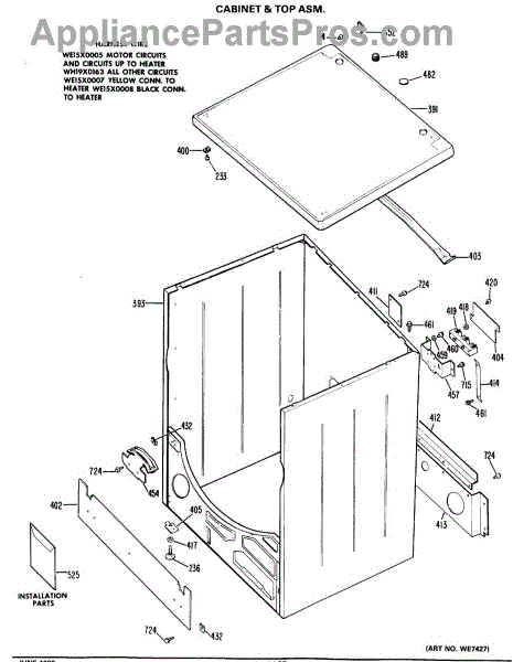 Parts for Ge DLB6850BEL: 03 - Cabinet & Top Asm. Parts