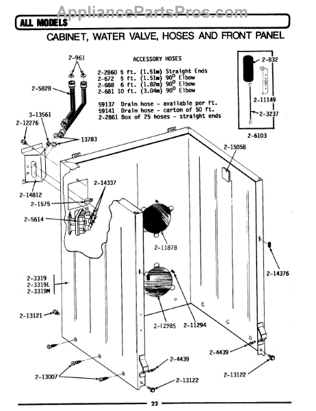 Size: 6 foot long. Washers not included. This is one hose, for a set with washers order 285363. For inlet hose screen use 285452A and for inlet hose washers use 285448A
