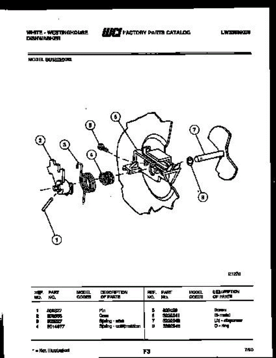 Spring cam for dishwasher door latch mechanism. Replace this small structural component if cracked, broken, or missing to restore proper door operation.